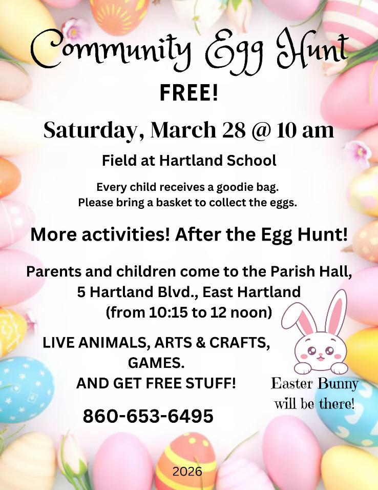 *On the second Monday of the month (unless otherwise noted*) The First Church in Hartland holds a luncheon in the Parish Hall Fellowship Room. This is a FREE community event. Donations are gladly accepted. Everyone is welcome!